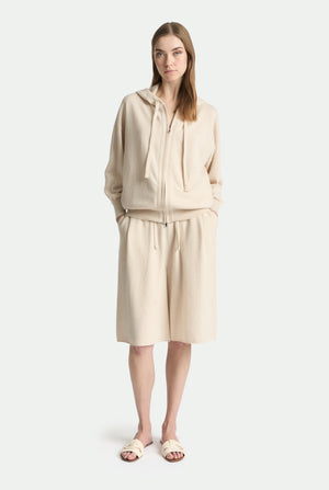 Regular fit Bermuda shorts made of pure cashmere, finished with an adjustable drawstring waist. This relaxed and sophisticated garment combines clean lines and soft fabric to ensure comfort and a natural drape, ideal for elegant and informal looks.