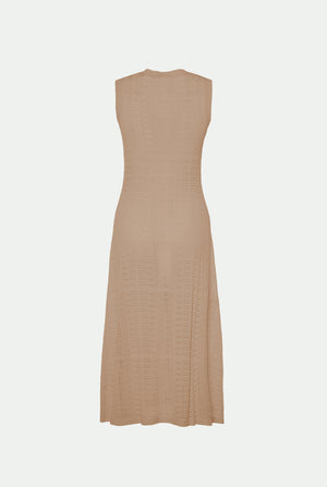 Regular fit sleeveless dress made of Makò cotton, enriched with unique workmanship that imparts beautiful lightness and texture. This versatile and contemporary garment combines soft lines and natural fabric to ensure comfort and a flowing drape.