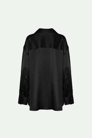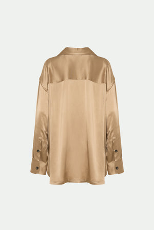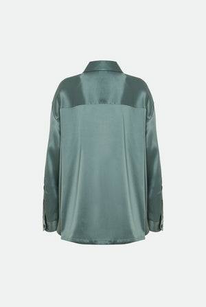 This satin and viscose shirt combines softness and shine in a garment with a sophisticated personality. The rounded hemline is inspired by men's style; the slits in the cuffs complete the design, offering practicality and a touch of timeless elegance. The buttons are made of Beigee horn.