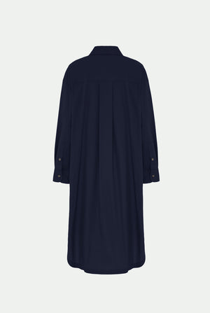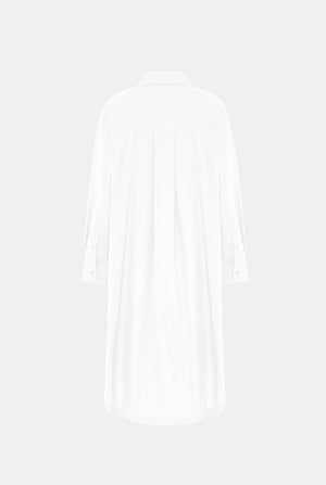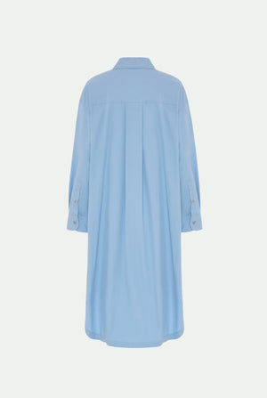 Regular fit cotton dress finished with side slits closed with horn buttons. This piece radiates discreet and contemporary elegance thanks to its sleek and clean lines. The functional details also enhance its versatility and natural drape.