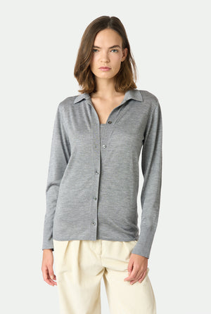Cashmere and silk shirt made from a combination of two precious yarns: cashmere to caress the skin and silk to give it brightness and lightness. Sleek, versatile and sophisticated, it is enriched with refined and delicate mother-of-pearl buttons. Attention to every detail makes it a little masterpiece of simplicity.