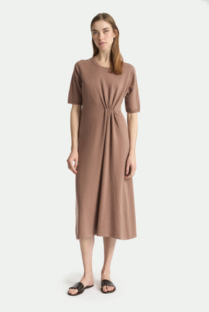 Regular fit cashmere dress with a discreet gathered detail on one side, which enhances its lines. The soft fabric and sleek construction ensure comfort and a natural drape for a versatile and contemporary garment.