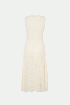 Regular fit sleeveless dress made of Makò cotton, enriched with unique workmanship that imparts beautiful lightness and texture. This versatile and contemporary garment combines soft lines and natural fabric to ensure comfort and a flowing drape.