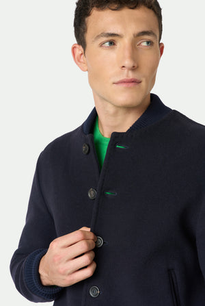Bomber jacket made of compact virgin wool and cashmere cloth, which is steamed for a more puffy and voluminous effect. Knitted details on the sleeves and collar add a touch of comfort and style. Elegant and durable Beigee horn buttons enhance the handcrafted quality of the garment. A versatile, warm and refined bomber jacket, perfect to face the cooler seasons...