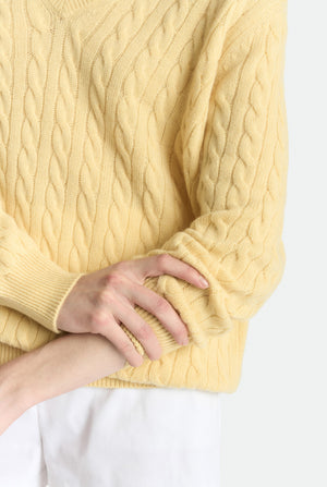 Loose fit jumper made of pure cashmere, with a cable-knit design that adds depth and softness to the garment. The V-neck and relaxed lines exude natural elegance, ideal for contemporary and refined looks.